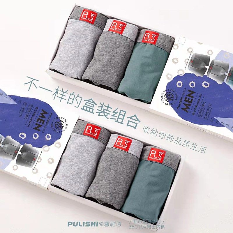 一盒3条 普利诗男士内裤纯棉中腰青年简约平角短裤抗菌底裆35010