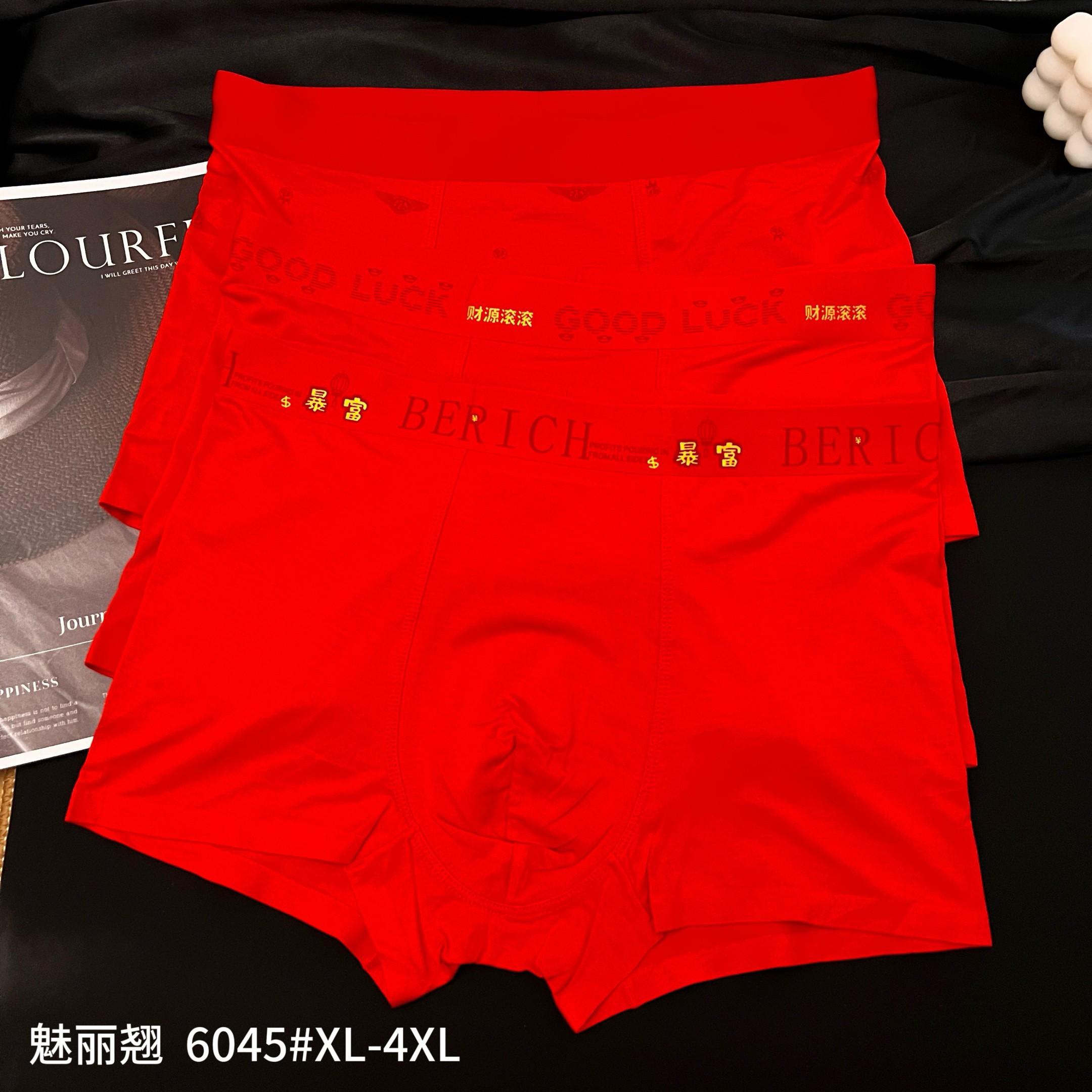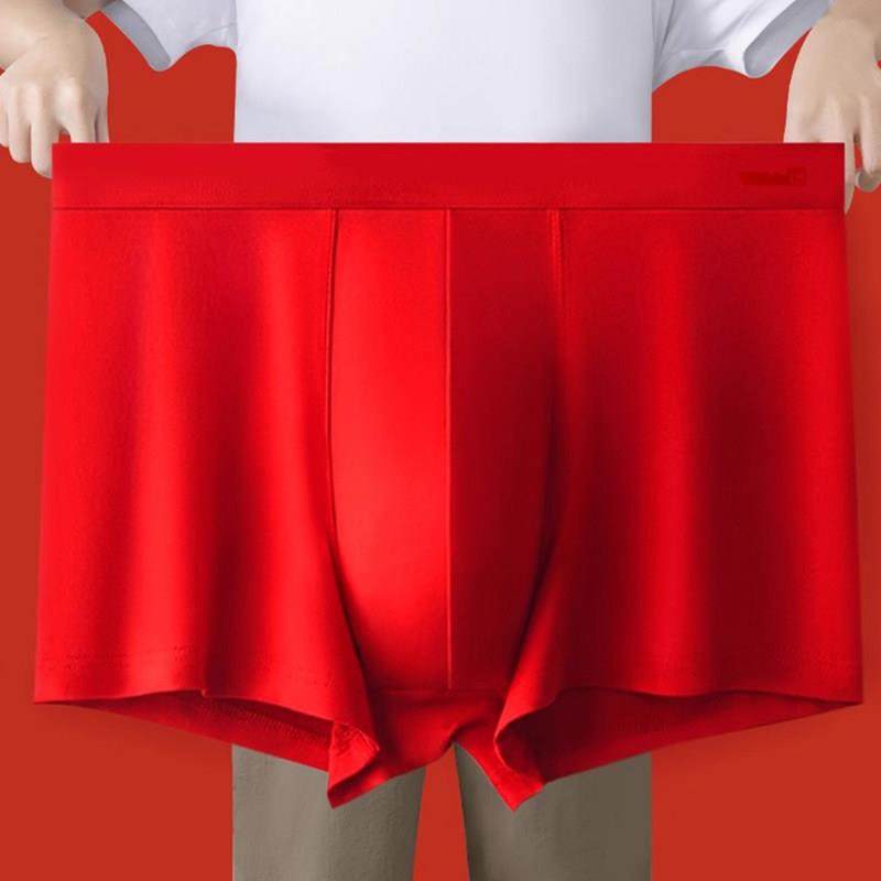 6045男士内裤本命年大红色纯棉四角裤男款蛇年结婚礼物平角短裤头