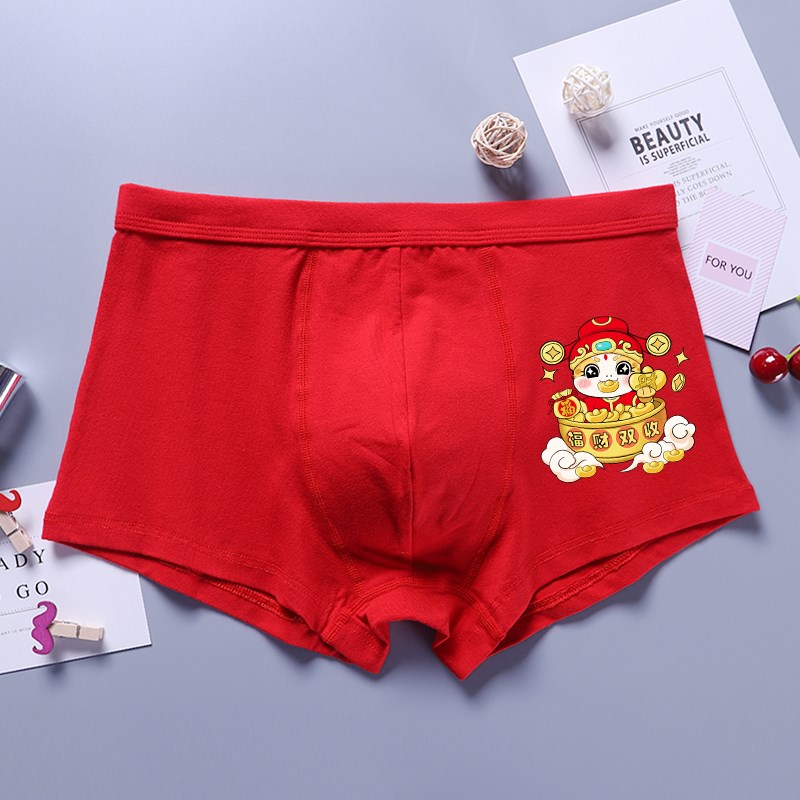 现货速发蛇年男士红内裤平角短裤送男友送老公结婚本命年大码四角