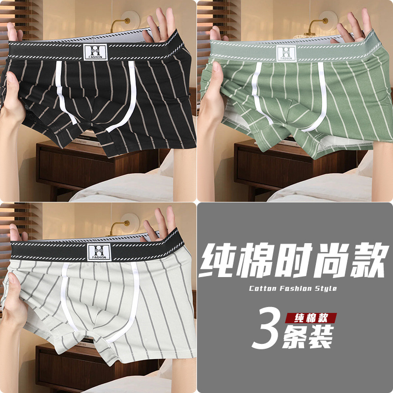 男士内裤25新款3条装纯棉潮流时尚平角青年条纹运动四角舒适透气