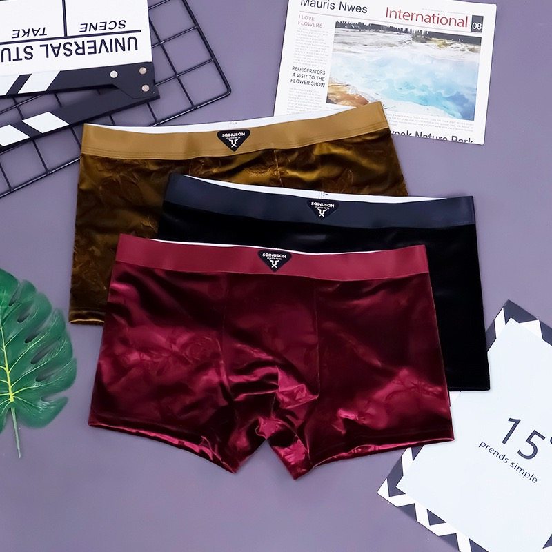 新款丝绒男士内裤舒适底裤透气四角短裤青年男生轻奢裤头平角裤衩