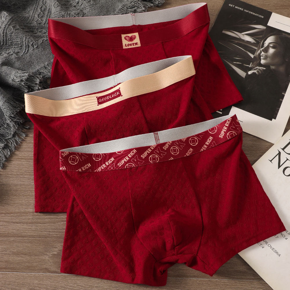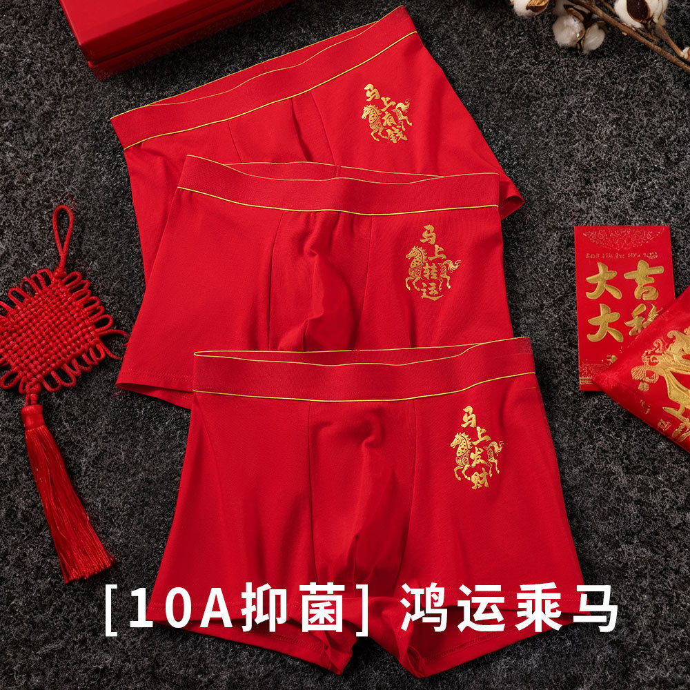 维多利亚新款本命红男士内裤结婚婚囍棉质男青年柔软舒适四角短裤