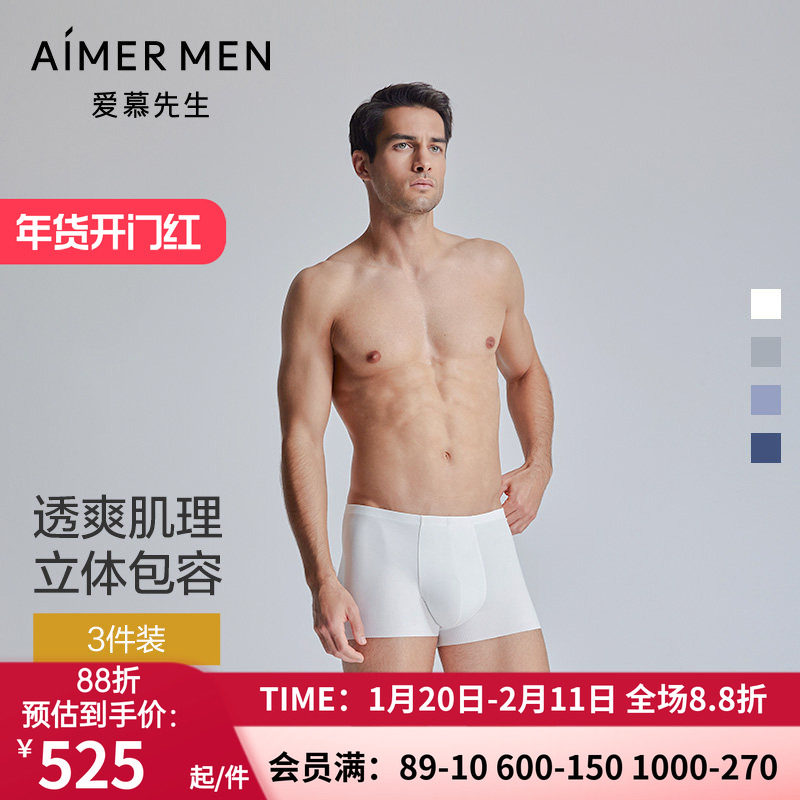 3条装 爱慕先生正品内裤男大空间冰丝凉感透气舒适轻薄款平角内裤