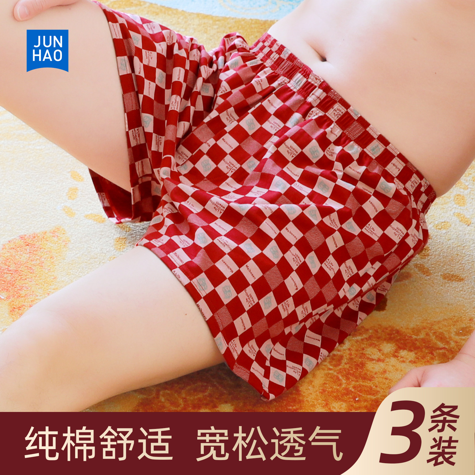 男士内裤纯棉宽松版四角阿罗裤本命年红色大码居家睡裤透气平角裤
