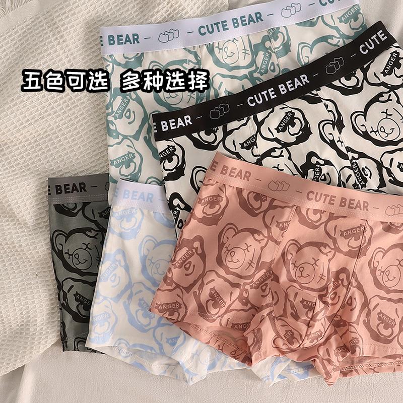男士内裤男款纯棉平角短裤青少年可爱小熊印花男生透气7A抗菌短裤
