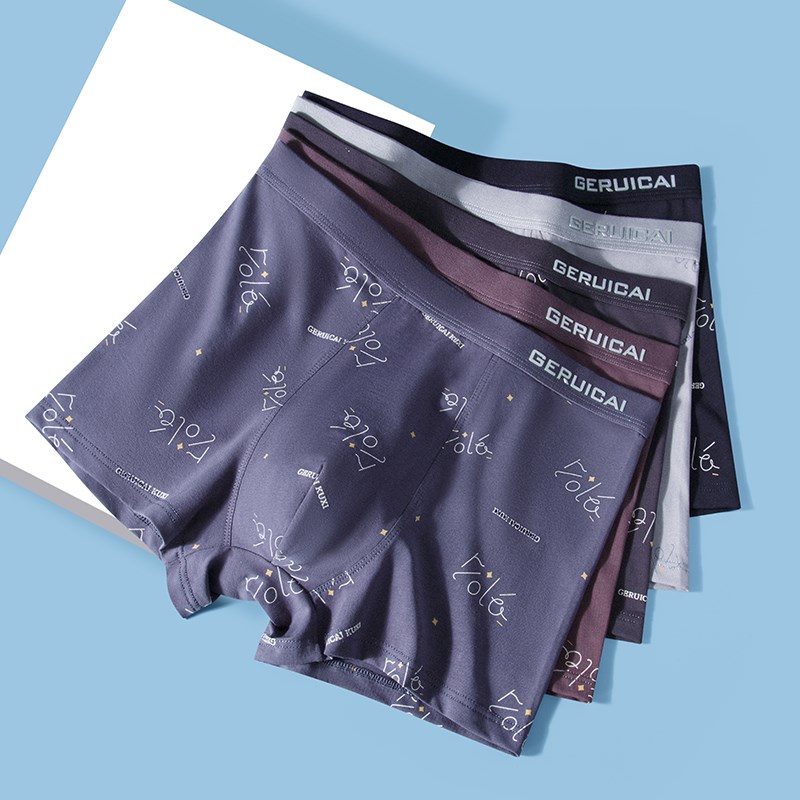 男士内裤纯棉青年透气潮流裤头印花男生个性运动四角平角裤衩短裤