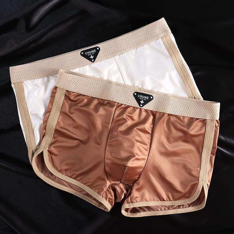 冰丝男士内裤男生平角裤头轻奢缎面四角裤2025新款夏季透气短裤衩