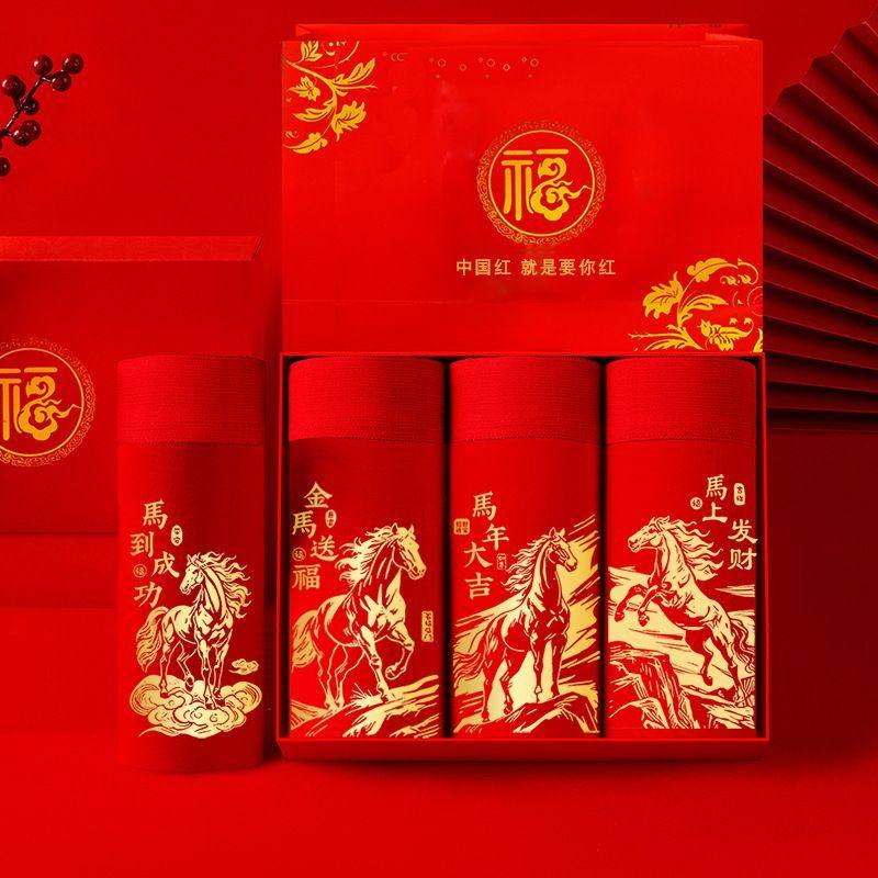 马年本命年男士内裤红色平角男生结婚喜庆四角裤衩男款裤头礼盒装
