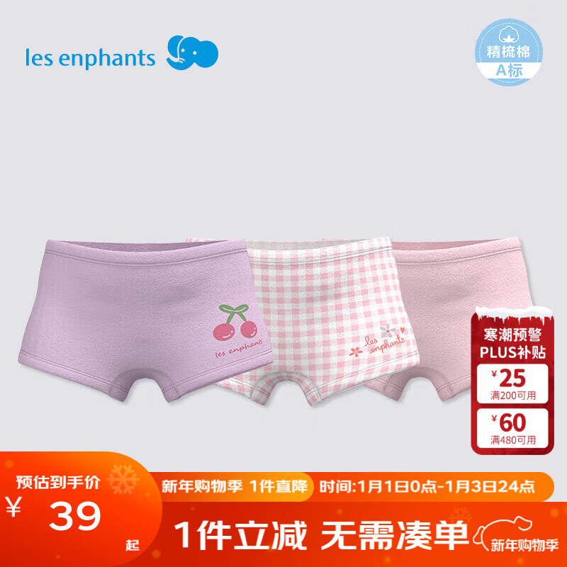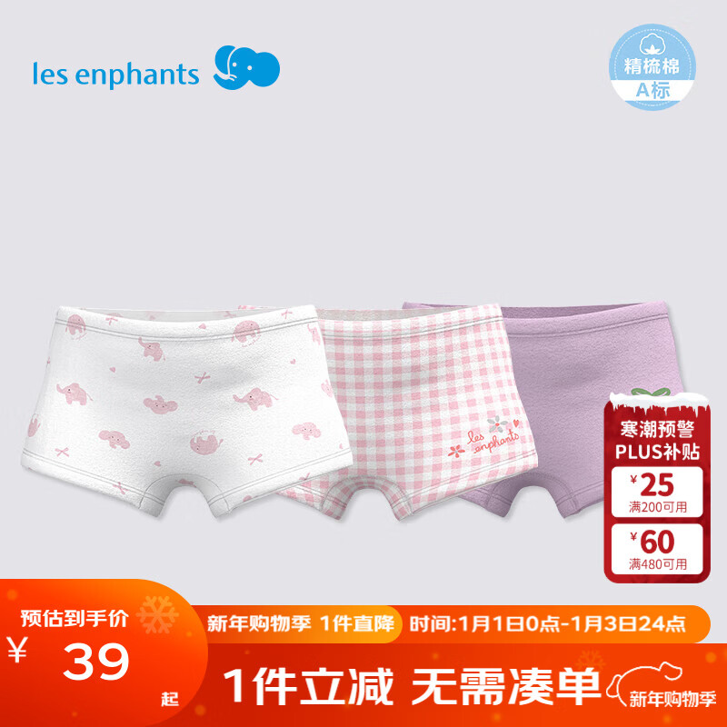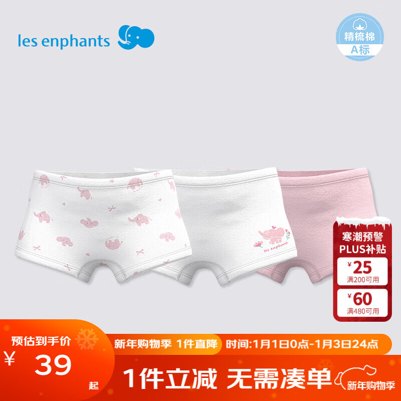 丽婴房【5A抗菌】儿童内裤5A抗菌内裤A类平角内裤全棉内裤3条女童内裤 粉色小象-女童(5A抗菌纯棉) 3条 120 cm