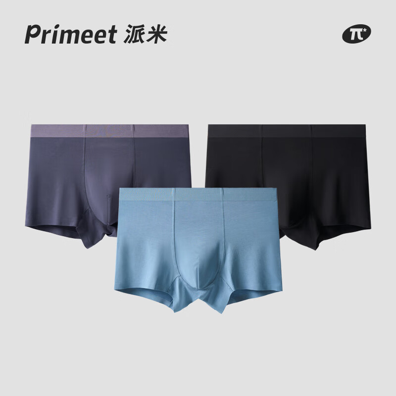 PRIMEET派米 内裤男士棉底裆抗菌透气运动平角短裤头四角裤 3条装