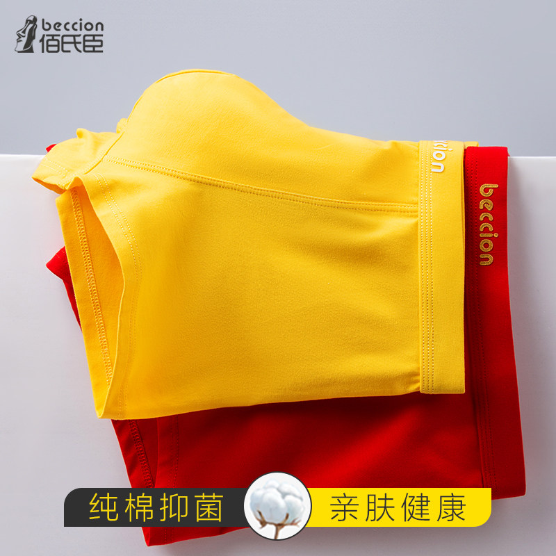 男士本命年内裤大红纯棉黄色纯色金色属虎红色虎年透气全棉四角裤