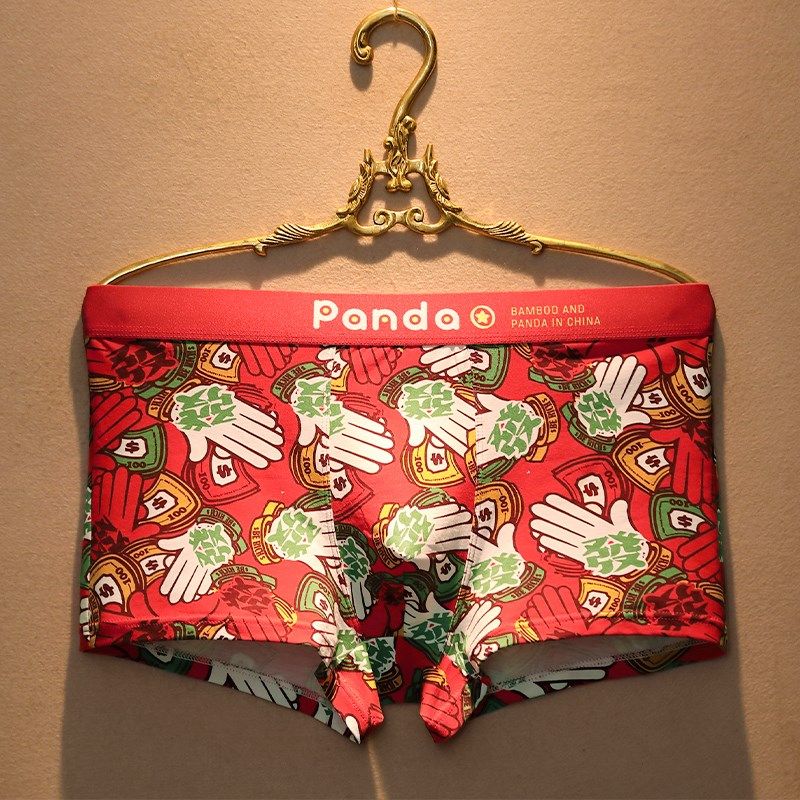伊凝森时尚男装专营抑菌吉言印花红内裤棉质酒红色男士内裤元旦