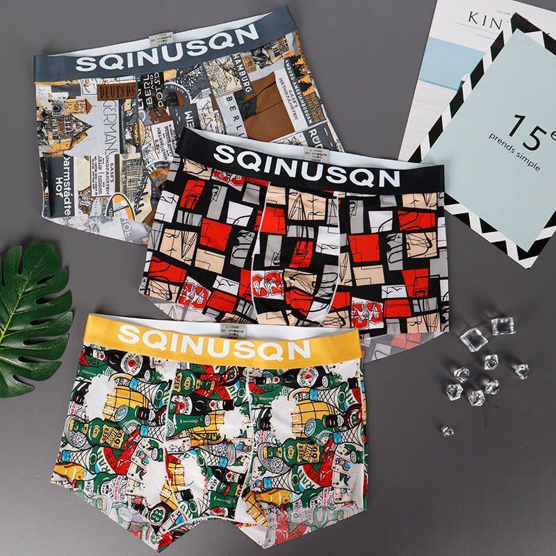 男士内裤冰丝凉感透气速干印花男款平角裤夏季轻薄潮流四角短裤头
