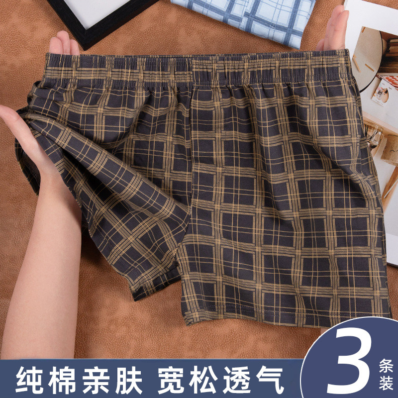 100%纯棉内裤男平角裤纯棉透气宽松大码老人爸爸爷爷四角高腰短裤