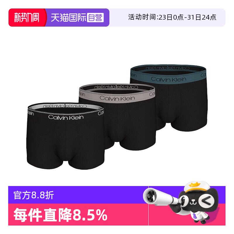 【自营】Calvin Klein/凯文克莱男士平角内裤CK简约舒适3条装
