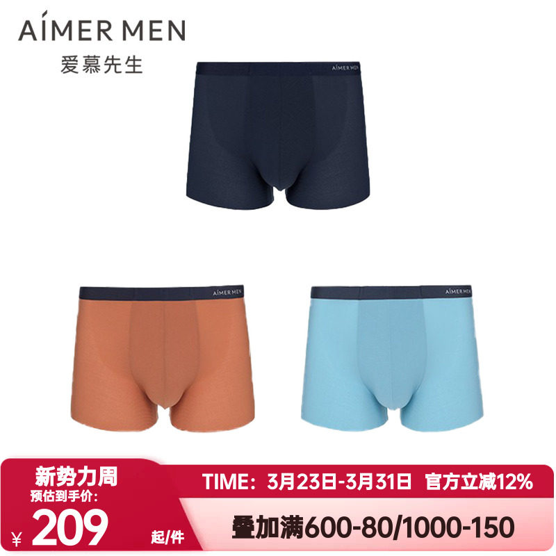 3条装 爱慕先生正品内裤男大空间冰丝凉感透气舒适轻薄款平角内裤