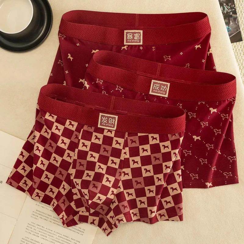 锋尚标衣柜平安福红内裤本命年红内裤纯棉男士四角裤结婚中国红