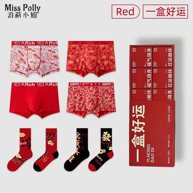 2025属蛇年本命年内裤红色男士袜子四角短裤男生衣服礼物礼盒爸爸