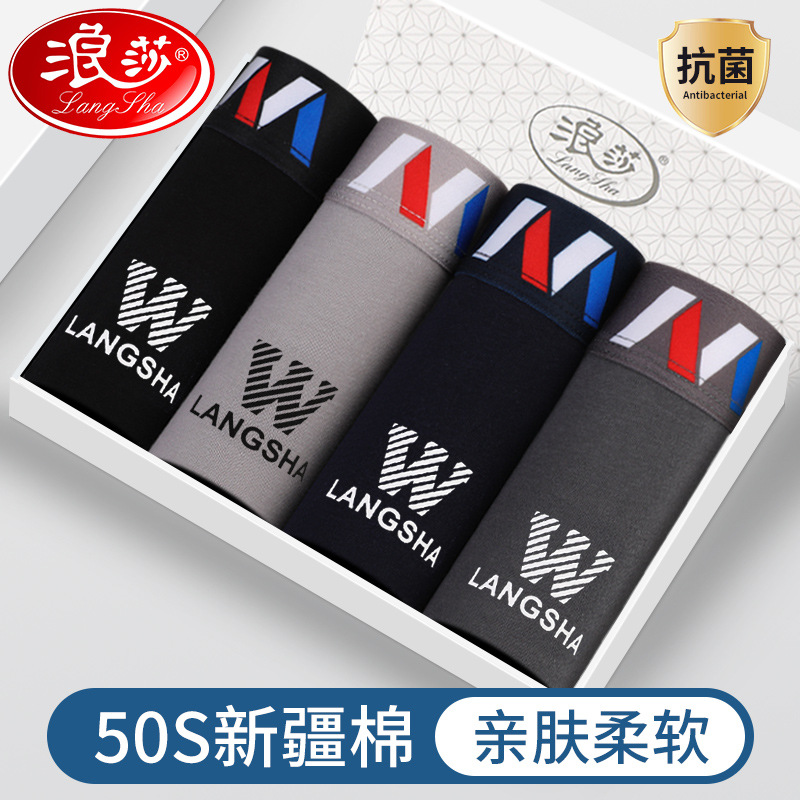 浪莎男士内裤纯棉平角短裤抑菌裆中腰透气运动紧身潮流男生四角