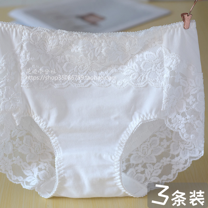 【三条装】白色中高腰蕾丝边纯棉全棉性感内裤女士三角裤短裤抗菌