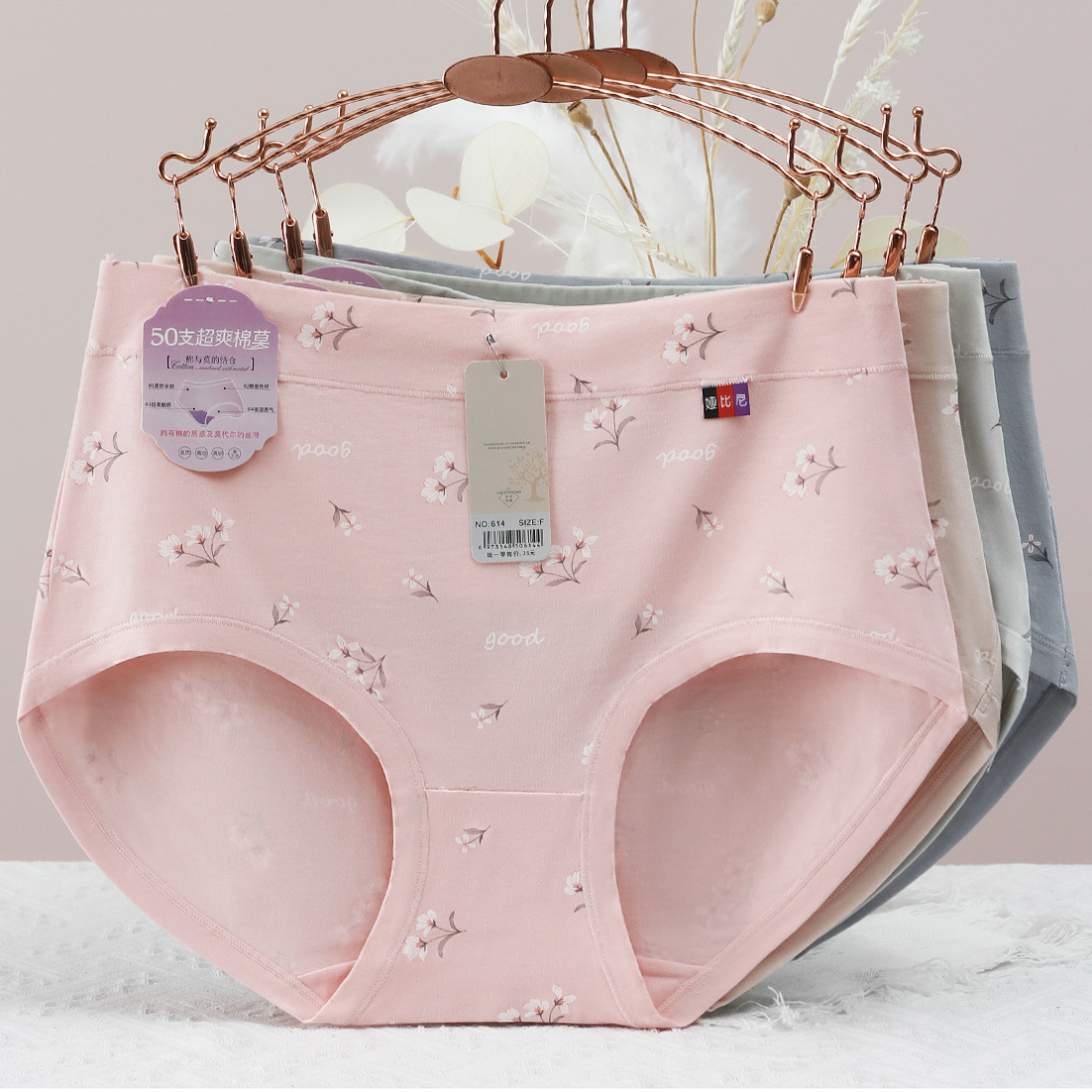 莫代尔人棉内裤女士中腰收腹提臀大码胖MM简约花朵印花三角底裤子