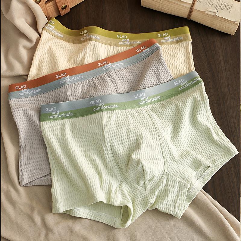 婴儿棉男士内裤纯棉舒适中腰平角裤男生透气肌理四角裤夏季短裤头