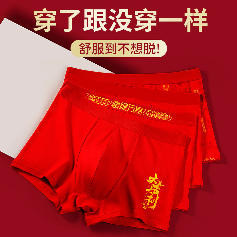 露露服装轻奢三条装男士个性好寓意文字印花纯棉内裤透气柔软喜庆