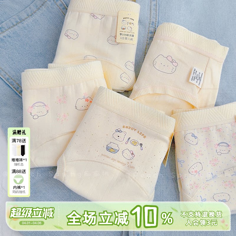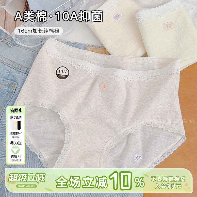 「甜点心页」少女内裤2026春夏A类纯棉加长裆10A抑菌中腰包臀三角