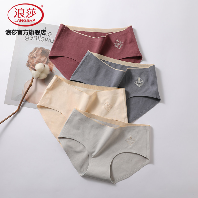 4条浪莎女士内裤女春季纯棉透气棉裆中腰无痕收腹日系三角短裤头