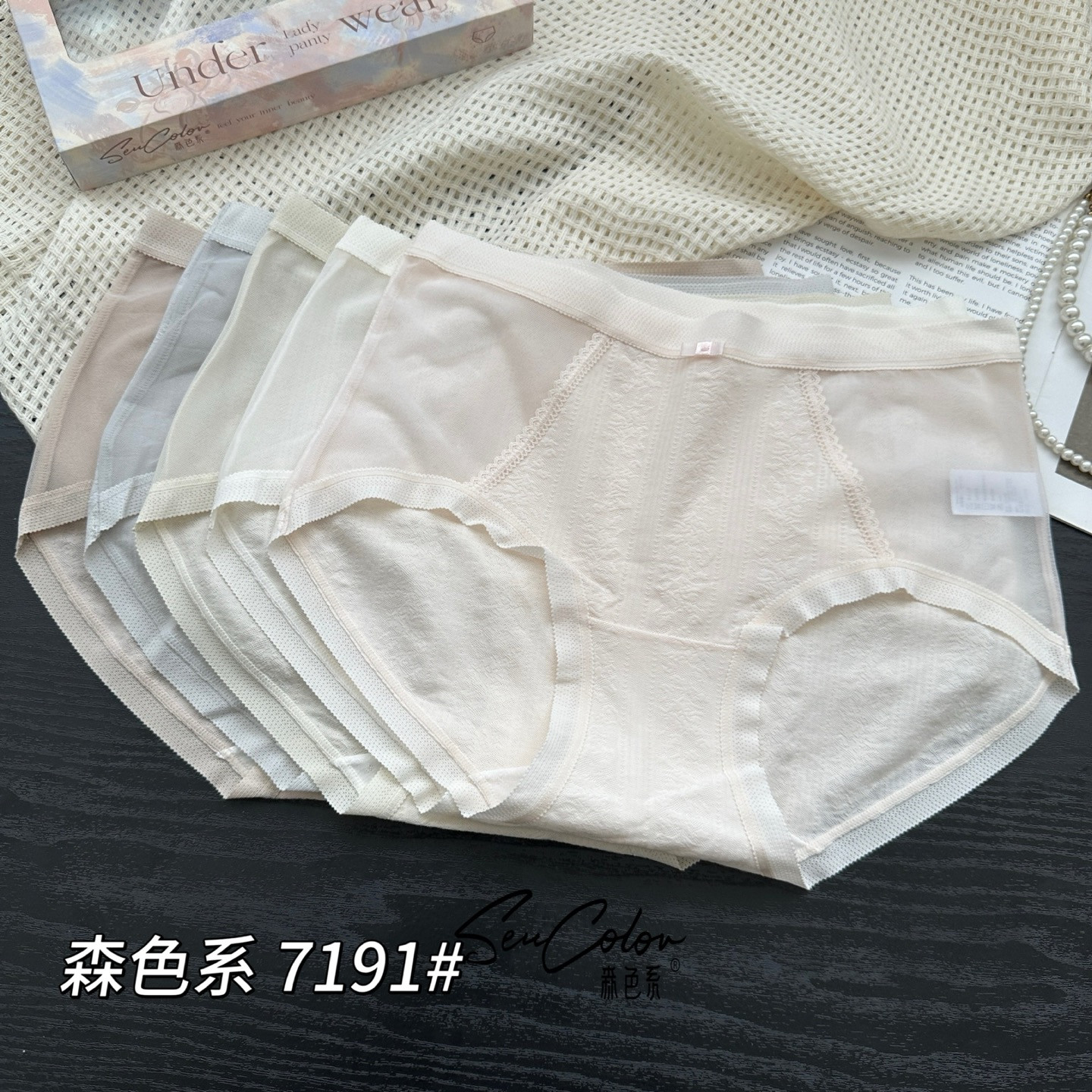 森色系五条装网纱拼接纯棉内档轻薄透气凉爽中腰三角短内裤女7191