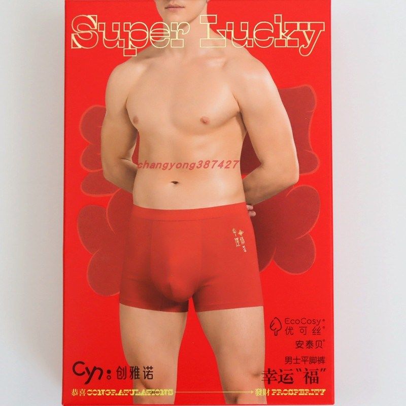 2条价CYN 创雅诺本命年抗菌男内裤82133幸运福大红色男士平角内裤