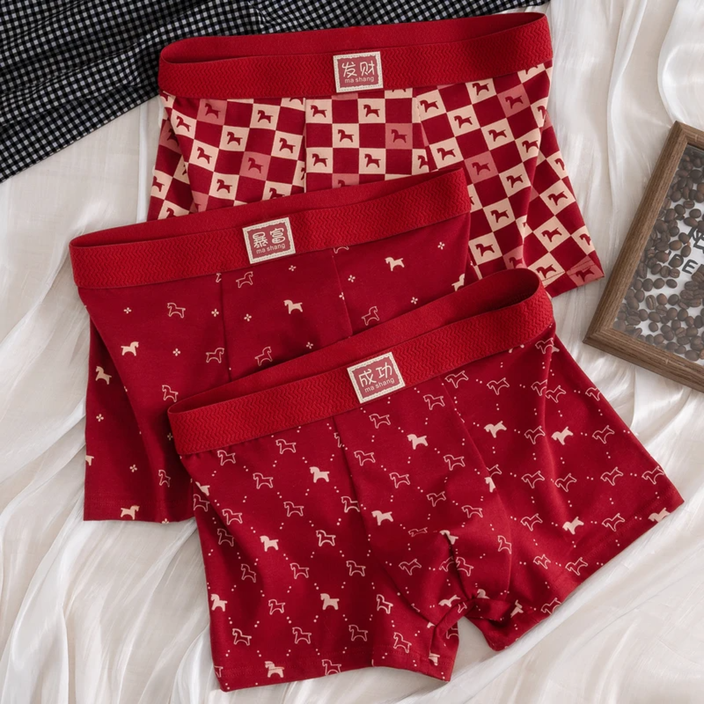 本命年男士内裤棉质26新款马年大红平角裤抑菌亲肤四角裤衩