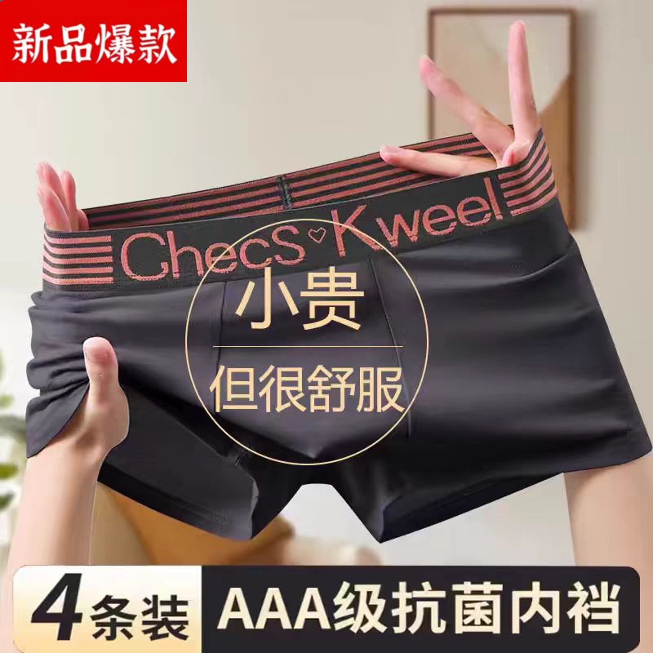 男士红色平角内裤秋冬季高棉舒适抑菌防臭吸汗高弹简约四角裤子