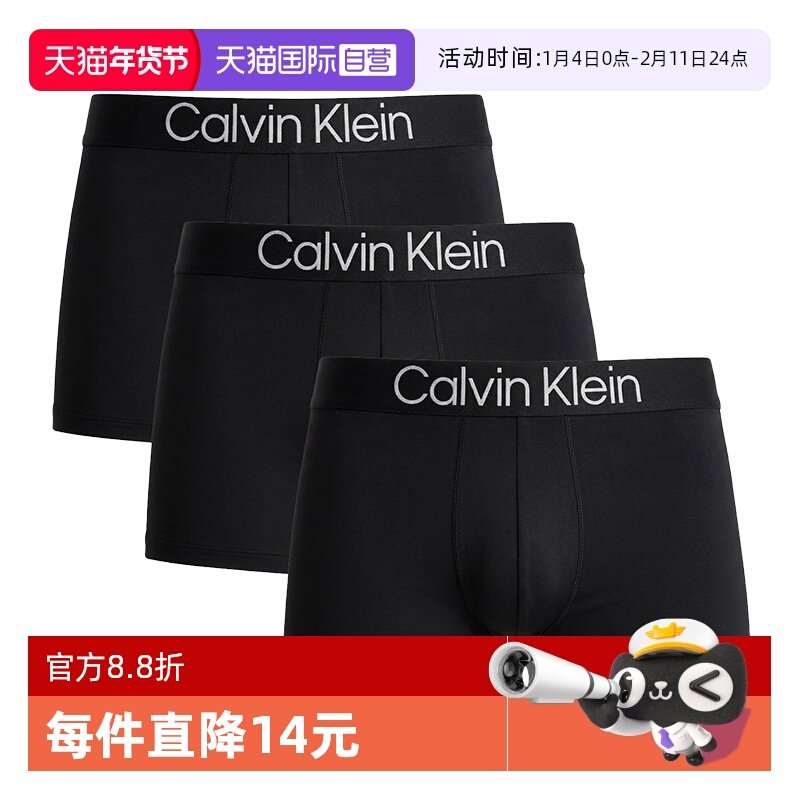 【自营】Calvin Klein/凯文克莱男士内裤平角透气四角三条礼盒装