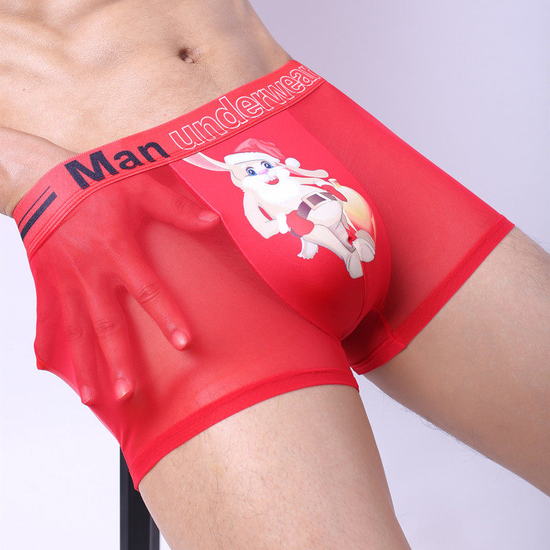 夏季新款生肖轻薄内裤男士个性透气冰丝四角裤透明速干红平角裤衩