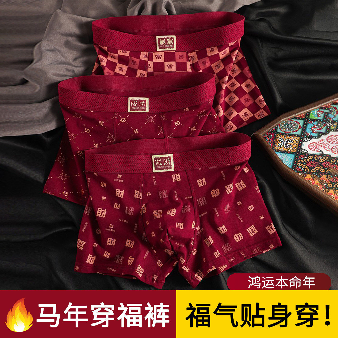 本命年纯棉男士内裤马年大红色平角裤男结婚喜庆抑菌四角短裤衩