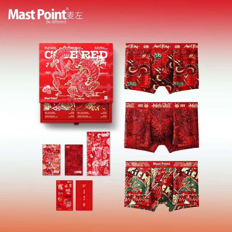 麦左男士内裤纯棉100%全棉裆红色本命年男生礼盒套装送男友四角裤