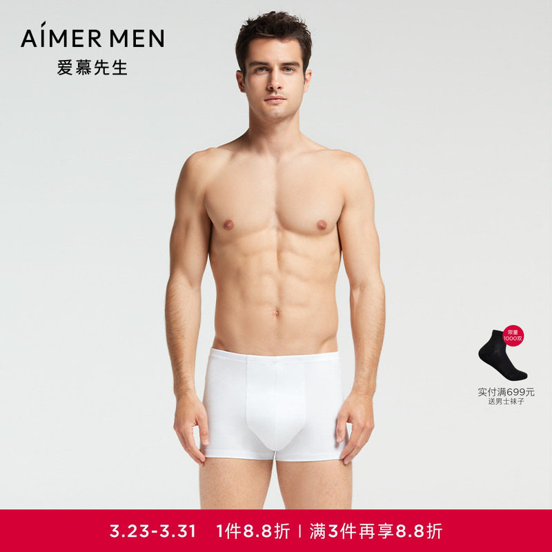 爱慕先生睿智棉100棉内裤男松紧包腰中腰平角裤NS23C411