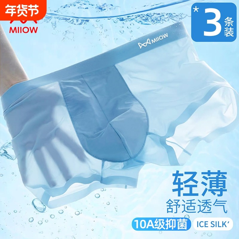 猫人男士冰丝内裤轻薄凉感舒适亲肤透气无痕石墨烯抑菌內裆裤衩