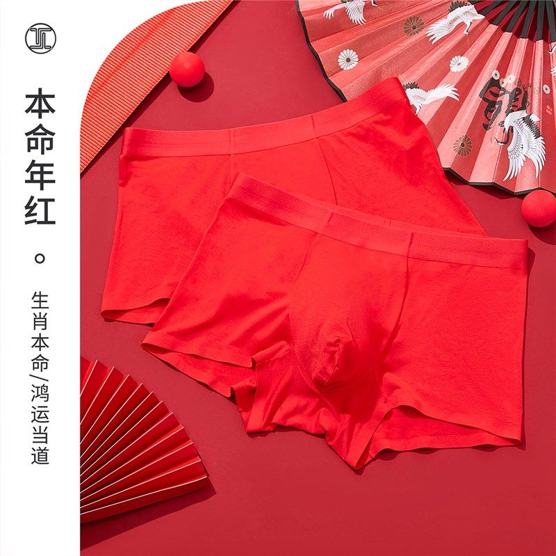 3条TINGE本命年男士大红色内裤组合生肖送礼结婚过年无痕平角短裤