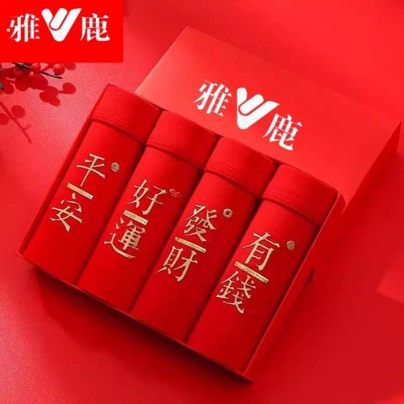 礼盒装2/4条本命年青年男士大红色内裤龙年纯棉平角裤四角短裤衩