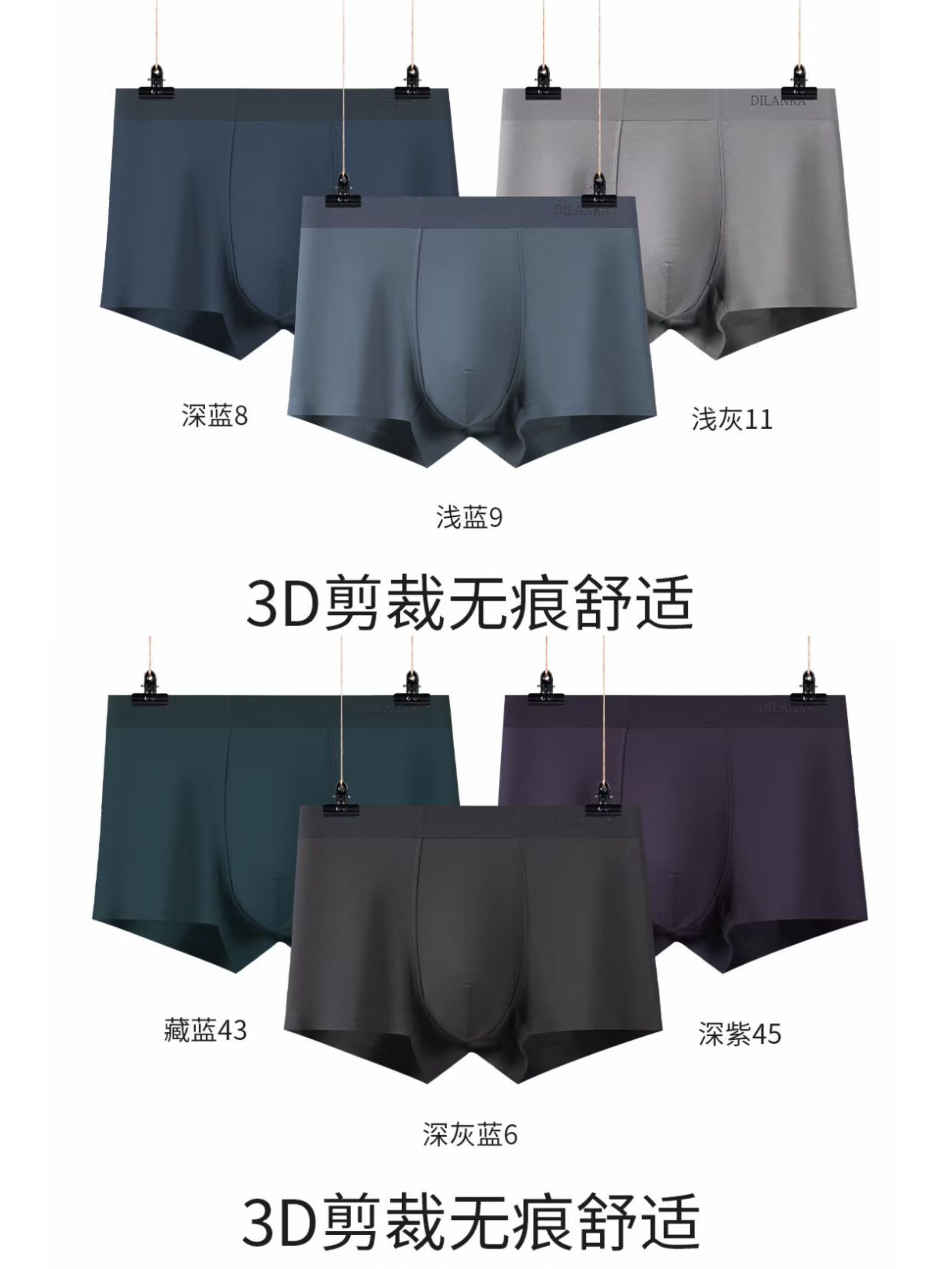狄兰卡男士内裤3条 薄款莫代尔新款四角无痕大码短裤透气抗菌平角