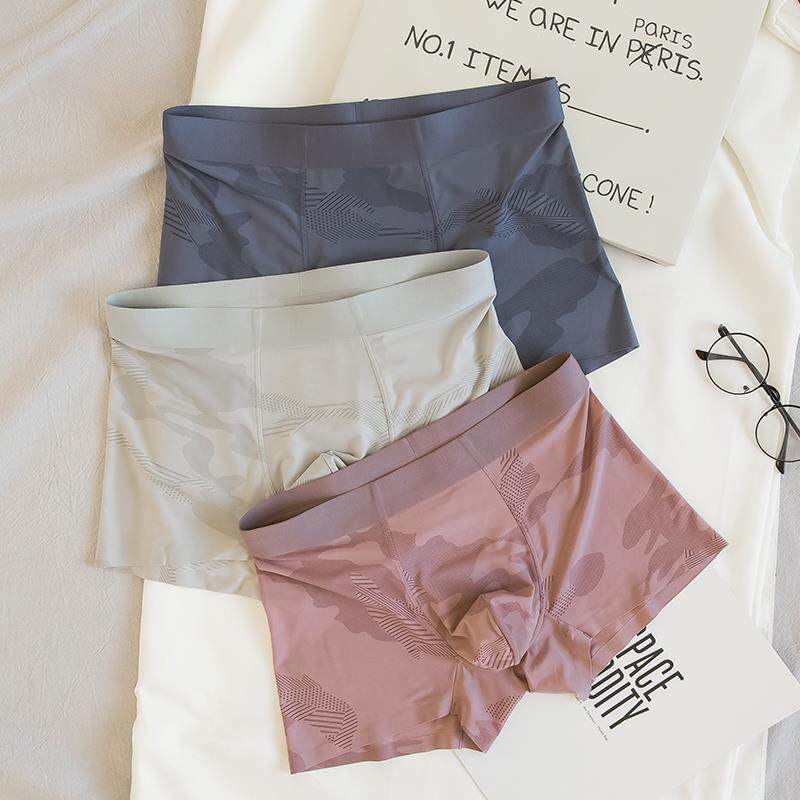 3条装轻薄款冰丝性惑男士内裤透气夏季真丝无痕性感透明平角裤衩