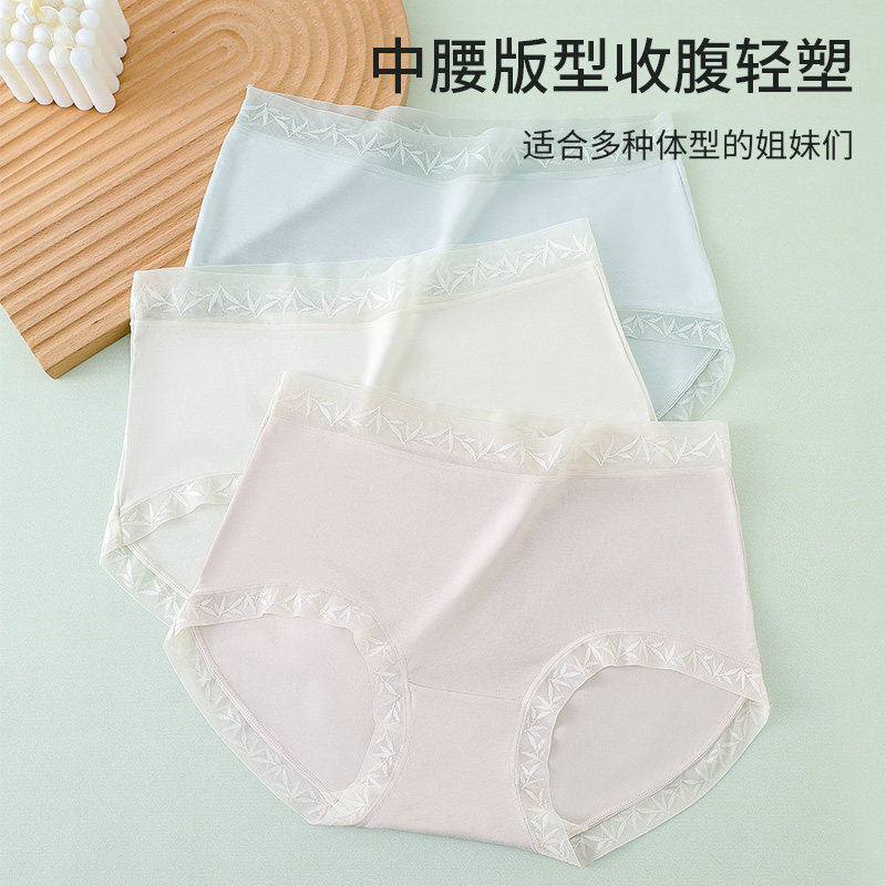 棉伙棉伴7A抗菌女士内裤无痕三角裤中腰收腹内裤全棉底档NK-F4