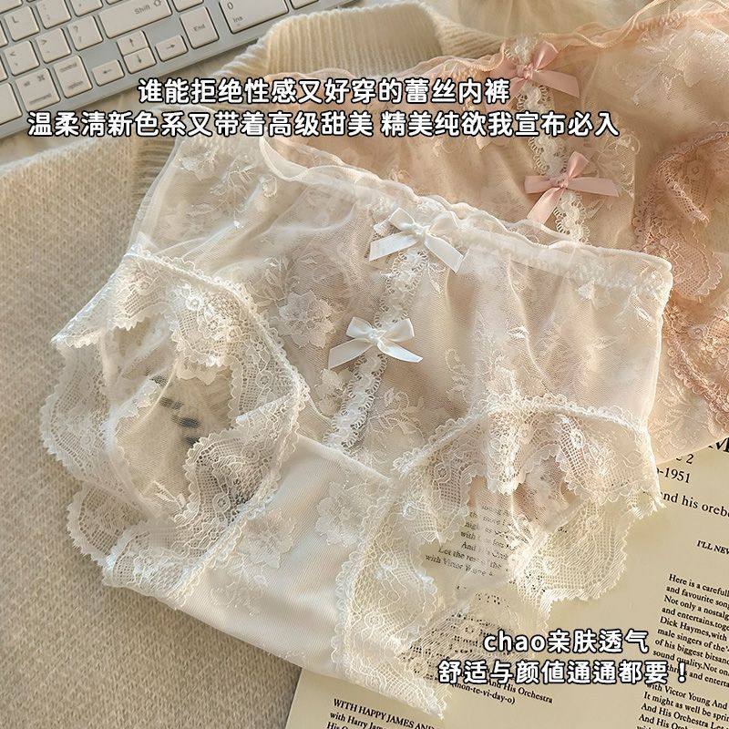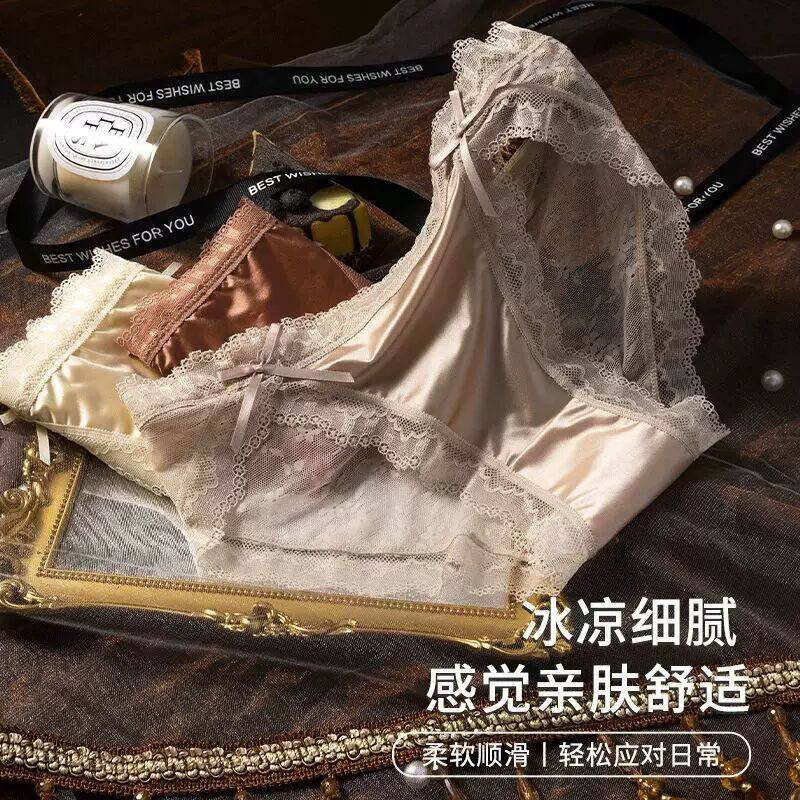 性感蕾丝华尔缎面内裤女纯欲蝴蝶结少女蕾丝性感迷人低腰三角裤