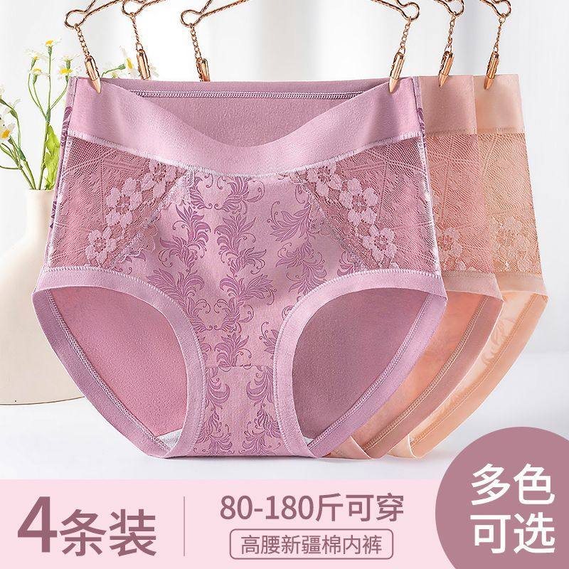 4条装高腰无缝收腹提臀塑身内裤女弹力大码加强版无痕蕾丝三角裤