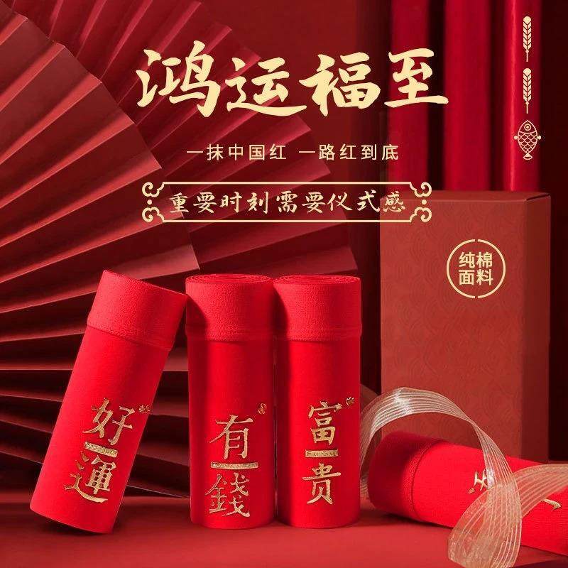 宵风轻奢本命年男士内裤纯棉大码下装发财平安结婚喜庆暴富