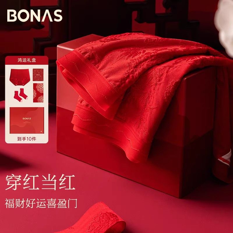 宝娜斯本命年桑蚕丝新国风10A抗菌中高腰红色内裤袜子2026年新款