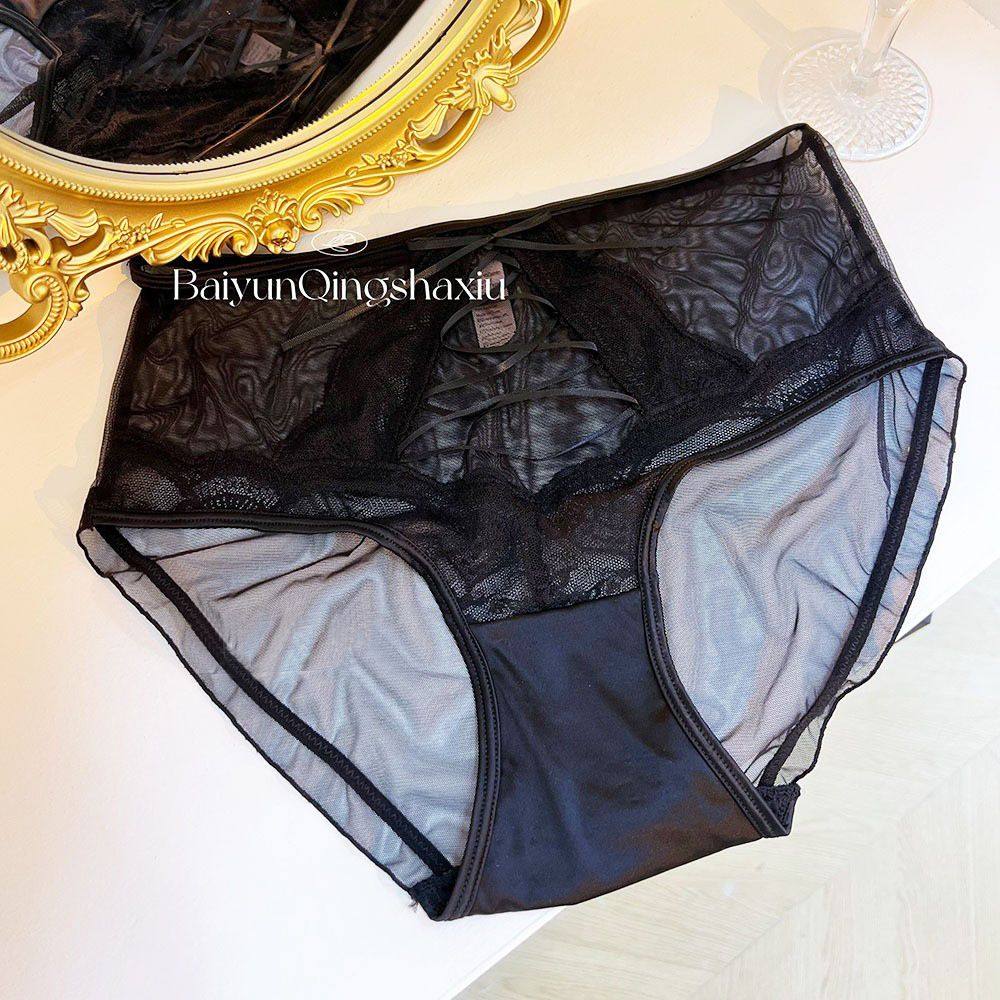 NANA纯欲大码胖MM网纱女内裤蕾丝镂空诱惑包臀舒适绑带女士三角裤