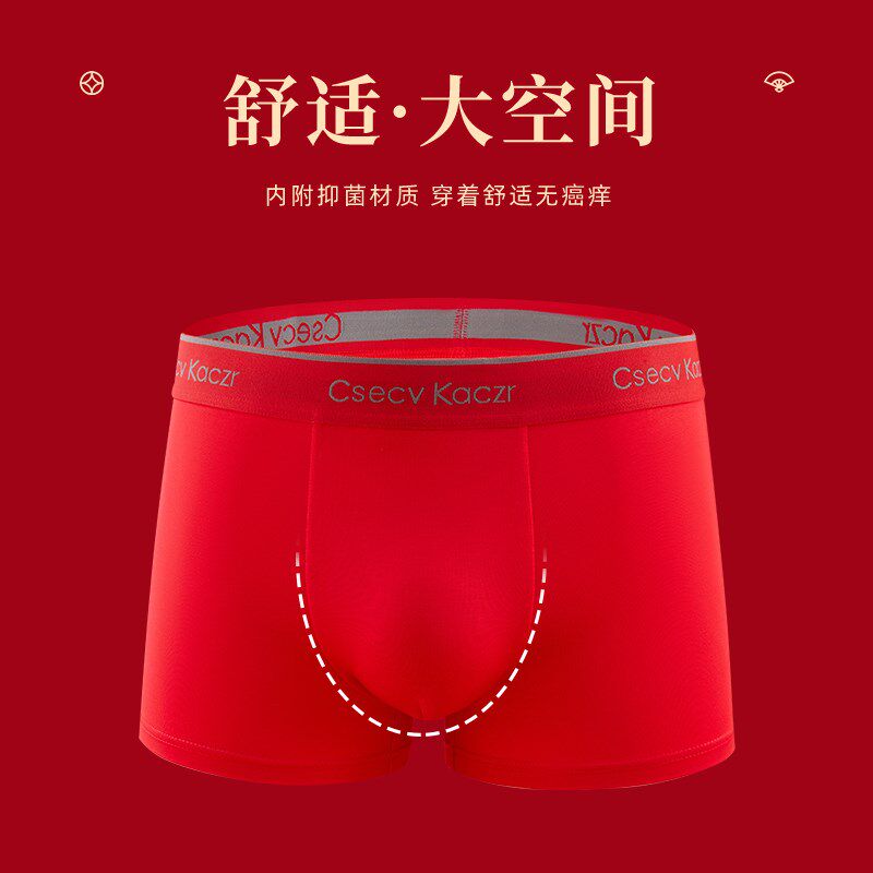 本命年内裤d男红色大红男士属龙结婚龙年青少年礼物红内衣送礼新